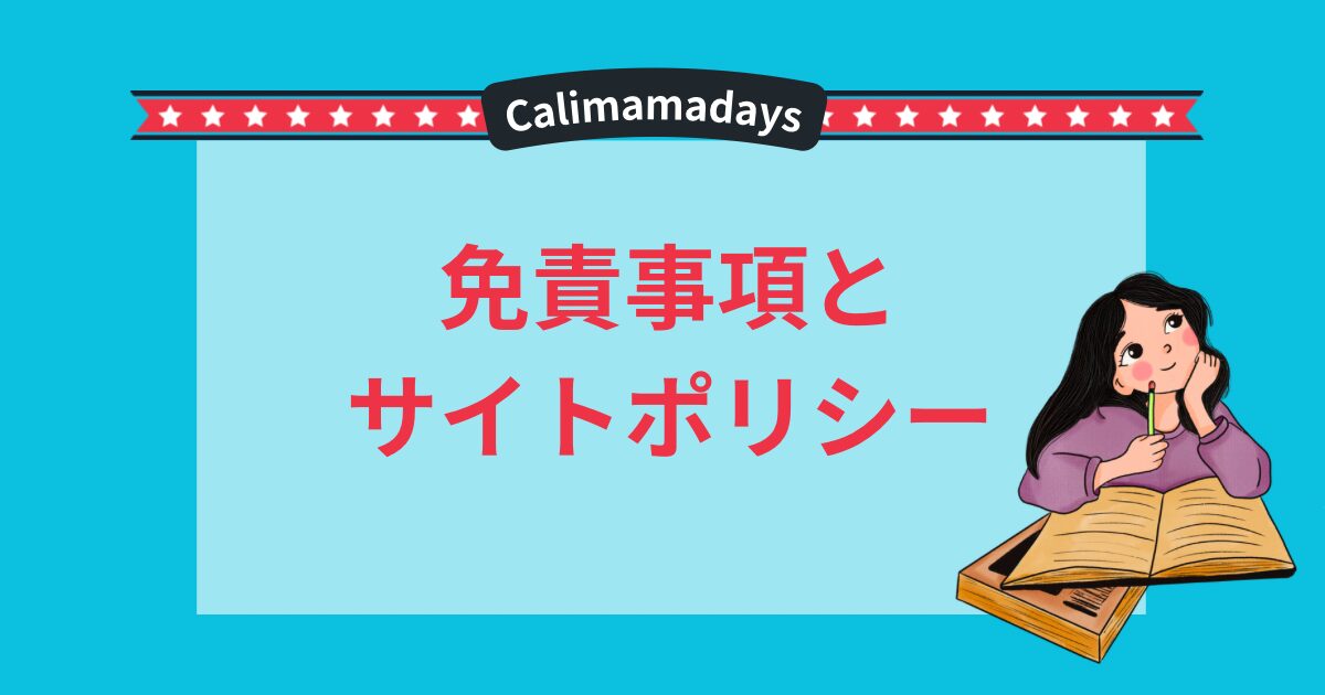 当ブログサイト【Calimamadays ~アメリカ暮らしと子育てのリアル~】(https://www.calimamadays.com)に掲載している内容は、運営者の経験や知識、調査に基づいて作成しています。できる限り正確で有益な情報をお届けするよう努めておりますが、その正確性や信頼性を完全に保証するものではありません。