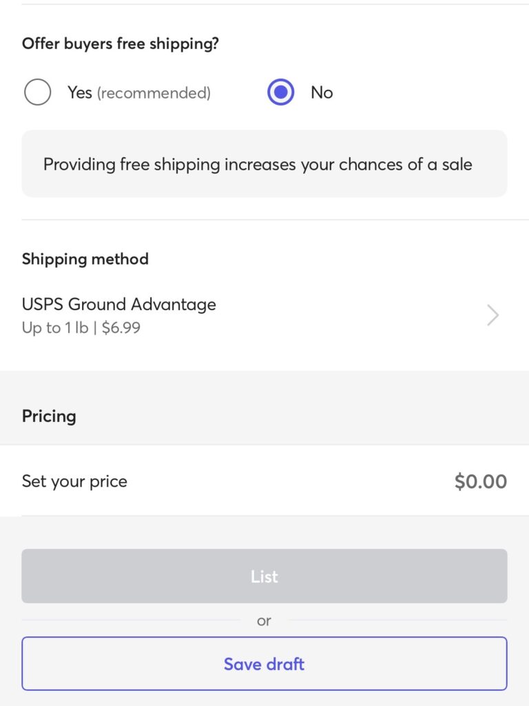 事前に類似商品を検索して相場に合わせた価格を設定するのがおすすめ。もしくはAIが自動で設定してくれたもののままでもOK。