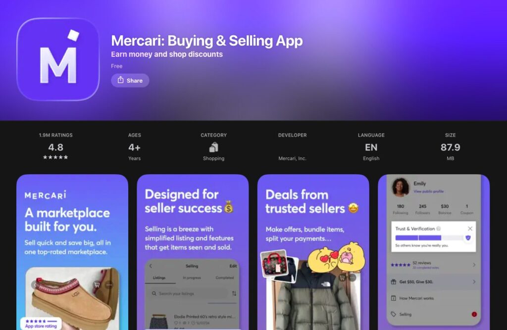 Mercari(メルカリ)はアメリカ版は多くの人に使われていて、日本と同じく誰でもスマホからかんたんに出品・購入ができるフリマアプリです。