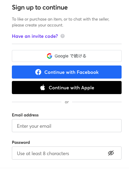- STEP 2【Mercari アプリを開き「Sign up」を選ぶ→登録方法を選ぶ】