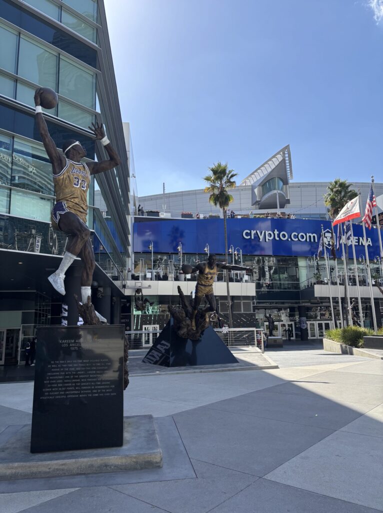 また、Crypto.com Arenaは、NBAのレイカーズの試合会場でもあるので、入り口付近やアリーナアイには銅像や写真などがたくさんありました。