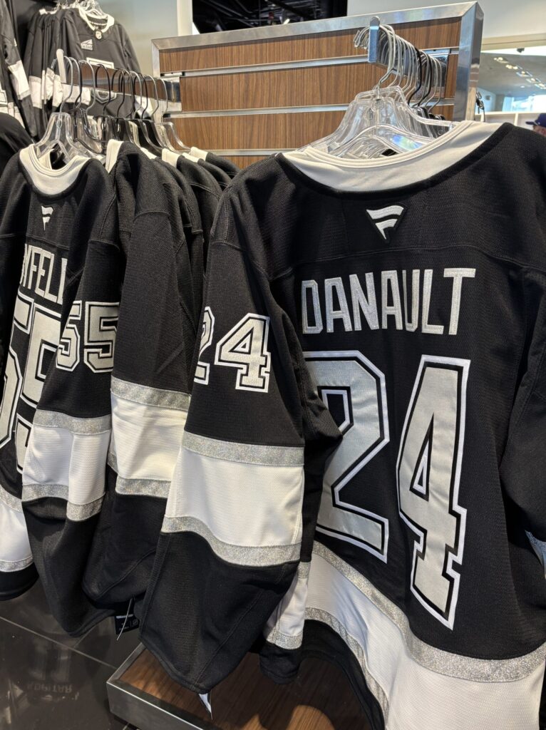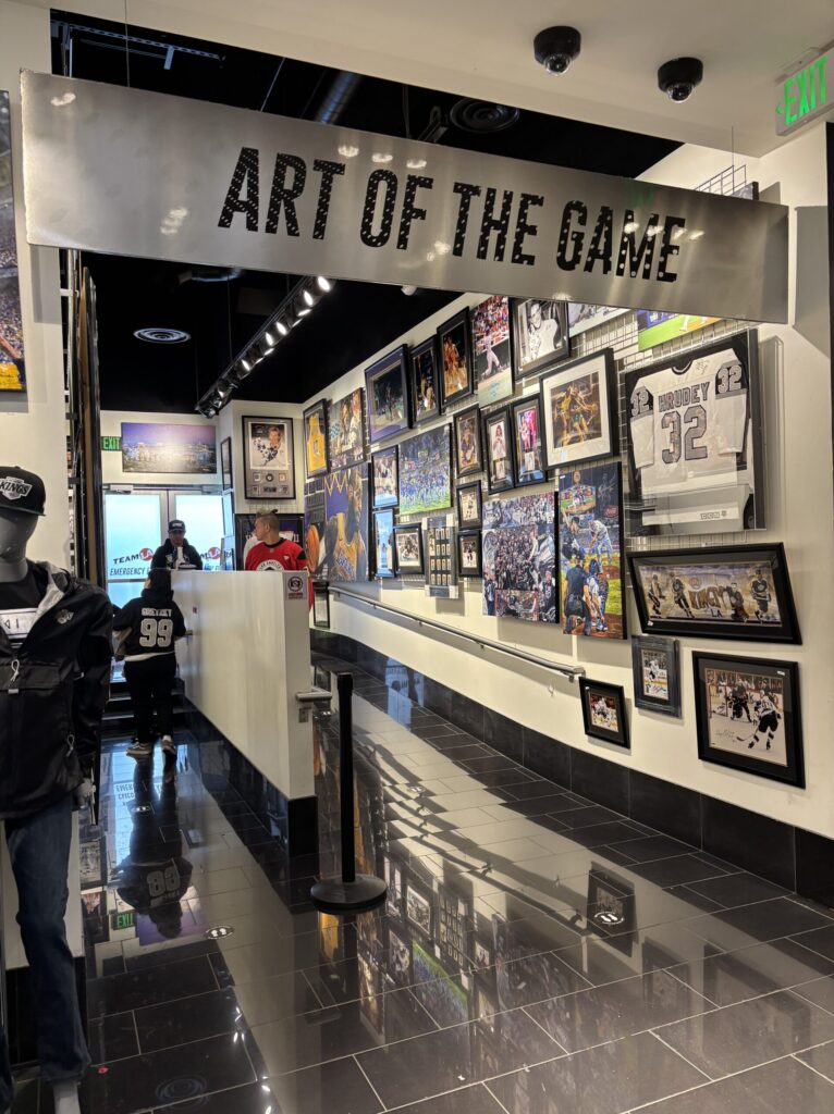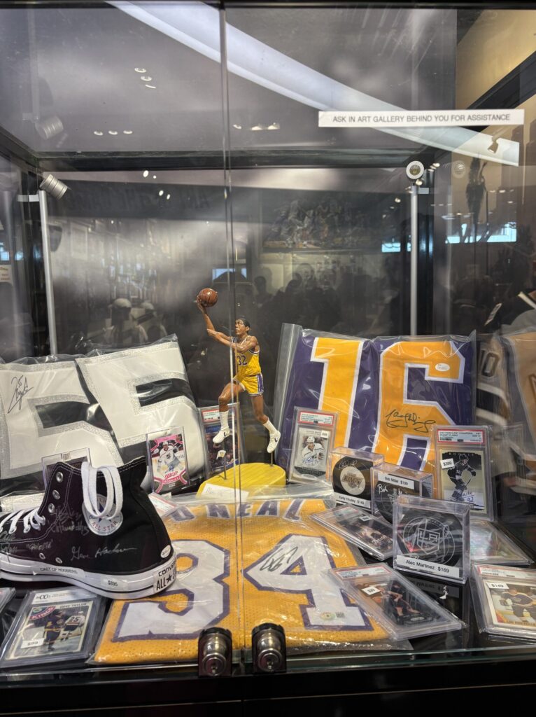 ショップ内には、実際に選手が身につけていたホッケー靴、ユニフォームなども販売されていたり、レイカーズのサインユニフォームなどの展示も見ることができます。