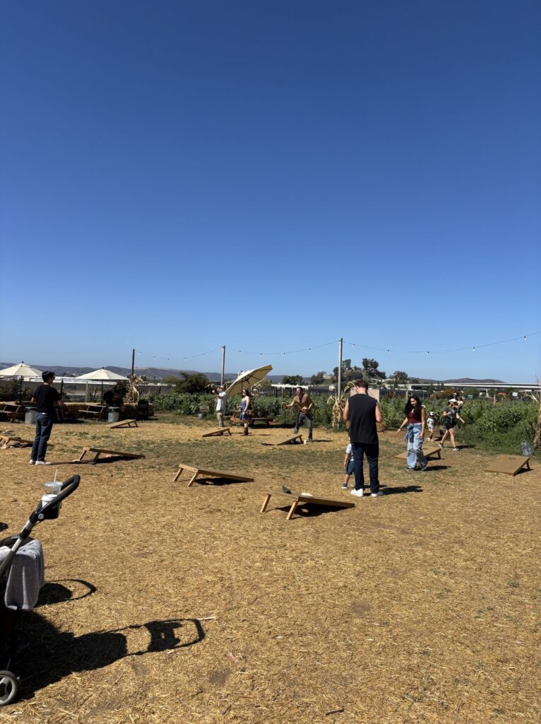 コーンホール(Cornhole):大人も子どもも遊べるビーンバッグを投げるゲームが設置されていて、家族で楽しめます。